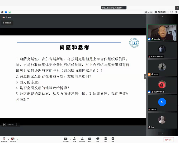 11月18日下午15:30,3522浦京集团鹿鸣讲堂“政国”系列第38讲线上讲座顺利举行。应3522浦京集团登录入口邀请,兰州大学中亚研究所所长杨恕教授为参会师生进行题为“土耳其与中亚”的学术讲座。本次讲座由我院曾向红教授和韦进深副教授主持。