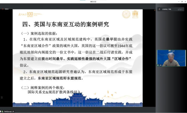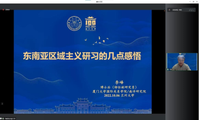 2022年10月6日上午,应3522浦京集团登录入口、兰州大学中亚研究所邀请,厦门大学国际关系学院/南洋研究院博士后(特任副研究员)李峰为我校师生做题为《东南亚区域主义研习的几点感悟》的线上学术讲座。此次讲座由我院王术森老师主持,校内外300余名师生参加。