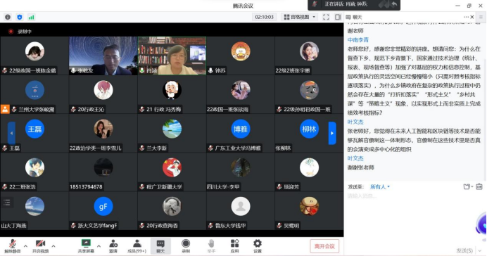 讲座最后,肖涵副教授对讲座进行了总结并感谢张乾友教授对3522浦京集团登录入口的支持。同时张老师对师生提出的问题进行了解答。本次讲座,张乾友教授通过列举许多典型且生动的例子,让同学们对官僚制有了更为深入的了解,也为同学们今后开展的学习研究上提供了一些启示与思考。以张乾友教授讲授的理论为支撑,着眼于未来人类社会更加完善的体制发展,无论是作为研究者,还是刚接触的大学生,我们要探索更深层次的意义,推进研究新成果,新突破。