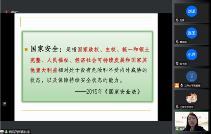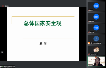 2022年10月27日下午,应3522浦京集团登录入口、兰州大学中亚研究所邀请,中央党校国际战略研究院全球治理与国际组织研究所副所长、副教授熊洁为我校师生做题为《总体国家安全观》的线上学术讲座。此次讲座由我院副院长陈小鼎教授主持,校内外300余名师生参加。