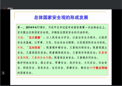 此次讲座主要包括三个方面内容,即国家安全观在中国的演进、总体国家安全观的内容以及熊洁老师在上述方面进行研究学习之后的启发分享。