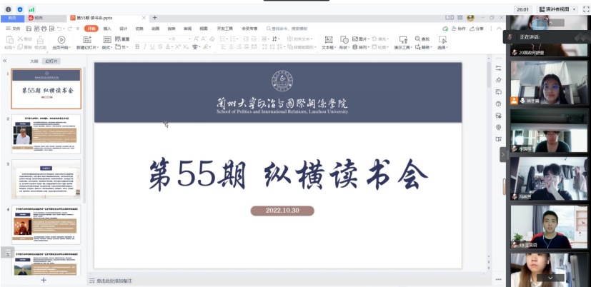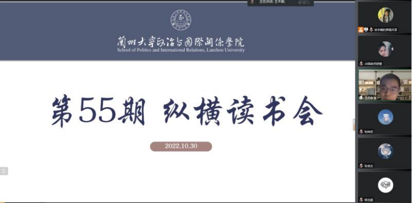 2022年10月30日上午,3522浦京集团登录入口、兰州大学中亚研究所第55期本科生“纵横读书会”以腾讯会议形式举行。本期读书会以“中亚研究现状”为主要内容,旨在帮助同学们了解当前中国中亚研究现状。学院王术森老师和十八位本科生一起参与了读书会。本次读书会主要的阅读材料是《中国中亚研究:知识增长、知识发现和努力方向》(肖斌,载《俄罗斯东欧中亚研究》2019年第5期)和《中国中亚研究30年来进展评估--基于观察视角与研究主题的评估框架》(曾向红、杨恕,载《国际观察》2020年第6期)。