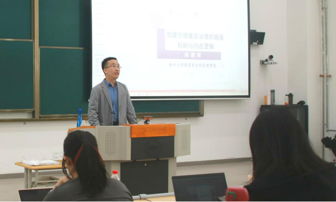 第二阶段,社区党建也开始代替单位党建工作,成为城市基层党建的主要着力点。赵聚军老师向同学们讲述了当时单位制度解体、人口城市化、公共事务不断下沉的社会背景。随后,赵聚军老师从自上而下的纵向社会整合和自下而上的横向社区整合两种模式具体地分析了准单位制社区、老旧社区、村改居社区、保障房社区以及商品房住宅社区的特点,介绍了在社会融合过程中呈现出来的社区服务以物业公司为主,基层党组织对居民利益影响有限,利益管控缺乏有效手段的特征。第三阶段,由民政部门主导的社区建设开始向党建引领的新格局转型。赵聚军老师从社会整合和部门整合两个方面对基层党建的政治逻辑和行动逻辑进行了分析。在社会融合方面,他表示,为了“使党组织真正成为社区的领头人”,在中央的要求下,地方全面强化了基层党建工作,并出现了强化“双报道”、开发基层党组织的服务功能、干部下沉和健全信息传输机制等创新。在部门整合方面,他表示,一些地方借助“区域党建”平台,缓解了“条块矛盾”等体制弊端,完善了信息传递机制。而基层的党建行政逻辑推进基层党政部门与企事业单位协同配合,增强回应群众诉求、解决问题的能力。