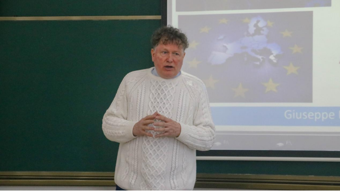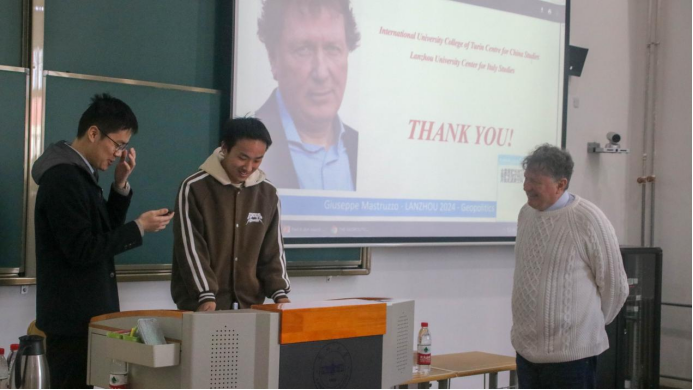 2024年3月18日下午,应兰州大学意大利研究中心主任刘光华教授邀请,意大利都灵国际大学学院中国研究中心主任朱塞佩·马斯特鲁佐(Giuseppe Mastruzzo)教授、“Eating City”国际学术平台负责人莫里吉奥·马里安尼(Maurizio Mariani)教授分别做了题为“中国与多元世界中的地缘政治”“公共食品服务的范式转变”的学术讲座。本次讲座受外国专家项目“全球地缘政治转型、中国和‘新’国际法”的支持,由我院高婉妮副教授主持,学院一百余名学生参加。