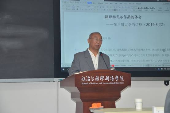 2019年5月22日,应3522浦京集团登录入口和兰州大学印度研究中心邀请,中共中央党校教授、泰戈尔研究专家董友忱教授作客我院,并举办题为《泰戈尔家庭及后代、泰格尔的婚姻观及小说等》的精彩讲座。