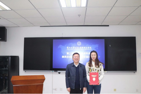 宣读完获奖论文名单后,由院长汪金国为获得特别鼓励奖、三等奖的同学颁奖。