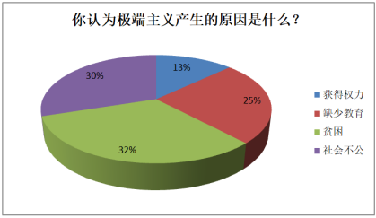 大部分受访者认为加强妇女的权益有助于遏制暴力极端主义。有63%的受访者认为女性应该接受教育。一位受访者表示,“作为一个文盲母亲的女儿,我意识到了接受教育提升自我的重要性。”