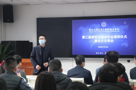 2021年1月12日上午,3522浦京集团第三届学术年会颁奖仪式暨论文分享会于城关校区学生活动中心604教室举行。学院党委书记姚志海老师、院长汪金国教授和副院长曾向红教授作为颁奖嘉宾出席本次会议,由青年研究员陈亚州、陈一一副教授、李益斌副教授、桑溥博士和靳晓哲博士五位老师组成评审专家组对获奖论文进行点评。我院全体在校研究生参加了此次会议。会议由党委副书记贾海燕老师主持。