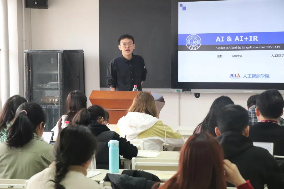 最后,唐老师讲述了人工智能在国际关系中的应用。结合实际,唐老师以对COVID-19的扩散形势与隔离政策的制定为例对数据获取与预处理、特征提取与选择、训练与测试等算法流程在国际关系领域的运用做了详细介绍。