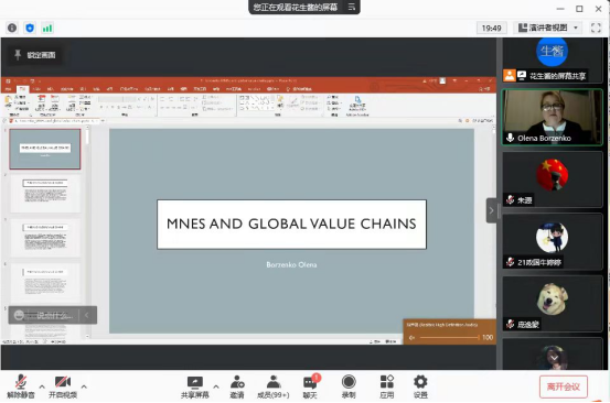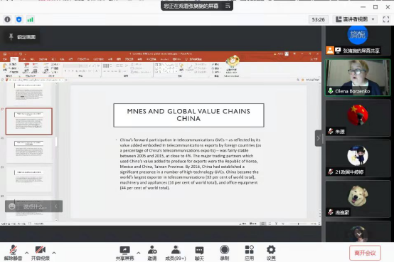 2021年12月2日下午,应3522浦京集团登录入口、兰州大学中亚研究所邀请,乌克兰科学院经济与预测研究所耶列娜·波尔坚科研究员为我院师生做了题为“跨国公司与全球价值链”的线上学术讲座。此次讲座由我院张旖旎老师主持,院内外200余名师生参加。
