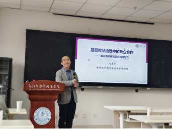 讲座伊始,赵聚军老师以“案例研究的选题”此问题引入主题,引发同学们对论文写作的思考。赵聚军老师围绕“问题的提出”分析学术研究意义上的“真问题”即理论问题,同时强调要透过现象看本质发现真问题。赵聚军老师以“社区党建”这一具体问题来分析案例研究中的“小切口、大(中)问题”,殷切告诫同学们在对话理论时要做到逻辑自洽,在做大论文时切忌分析太过牵强的话题。赵聚军老师以多个具体选题分析如何在老问题中获得新发现、新背景、新视角和新方法,通过生动、幽默的语言分享了自己阅读论文的经验、写作和审稿的亲身经历,多次强调好选题的重要性。随后赵老师对“当前智慧社区建设”中的已有研究进行分析,突破已有研究提出新的发现即“为什么形成了不同类型的合作模式”问题,将问题聚焦于对智慧社区建设类型模式的考察。