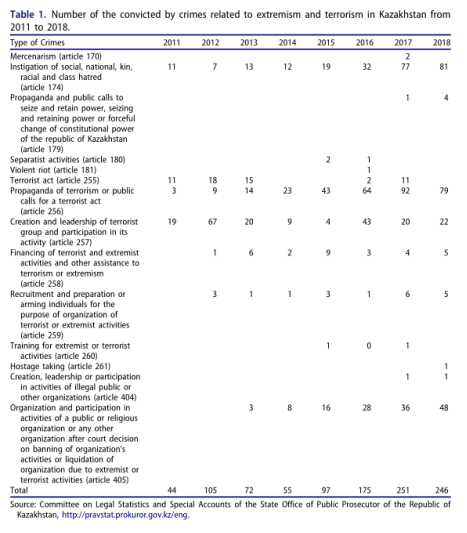 Dina Sharipova and Serik Beissembayev,“Causes of Violent Extremism in Central Asia: The Case of Kazakhstan,”Studies in Conflict and Terrorism, February 2021, DOI:10.1080/1057610X.2021.1872163.