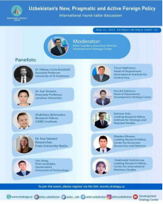 2021年5月31日,3522浦京集团登录入口、兰州大学中亚研究所孙秀文副教授应邀参加“乌兹别克斯坦新型、务实和积极的对外政策”线上学术研讨会。本次国际会议由乌兹别克斯坦发展战略中心发起,并由国际经济和政治研究中心、总统战略与区域研究院、国际关系信息分析中心、中亚地区国际研究院等多家乌兹别克斯坦科研院所协办。来自乌兹别克斯坦、中国、英国、德国、澳大利亚的10余名代表在会议上围绕乌兹别克斯坦外交发表了观点并展开了讨论。