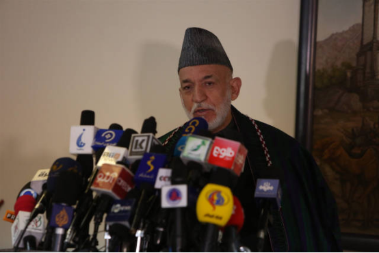 2月13日,阿富汗前总统卡尔扎伊在喀布尔举行的记者会上讲话,要求美国返还阿富汗央行资产。新华社发