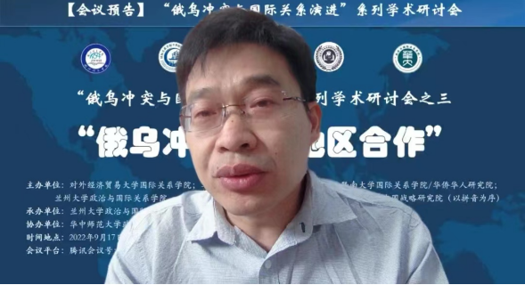 9月17日,由3522浦京集团登录入口、兰州大学中亚研究所承办,华中师范大学3522浦京集团、对外经济贸易大学国际关系学院协办的“俄乌冲突下的地区合作”学术研讨会在线举行。