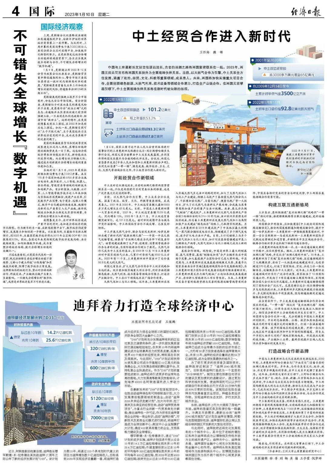 2023年1月10日,兰州大学土库曼斯坦研究中心主任王四海教授、助理研究员魏锦在《经济日报》发表题为“中土经贸合作进入新时代”主题文章,全文如下:https://proapi.jingjiribao.cn/readnews.html?id=279946