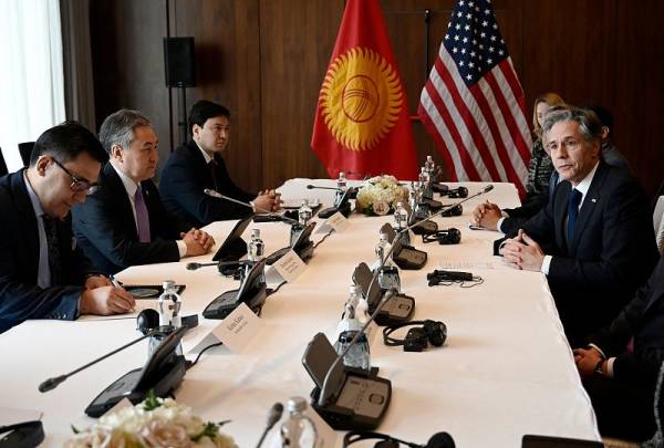 2月28日,布林肯会见吉尔吉斯斯坦外长库卢巴耶夫。图自视觉中国