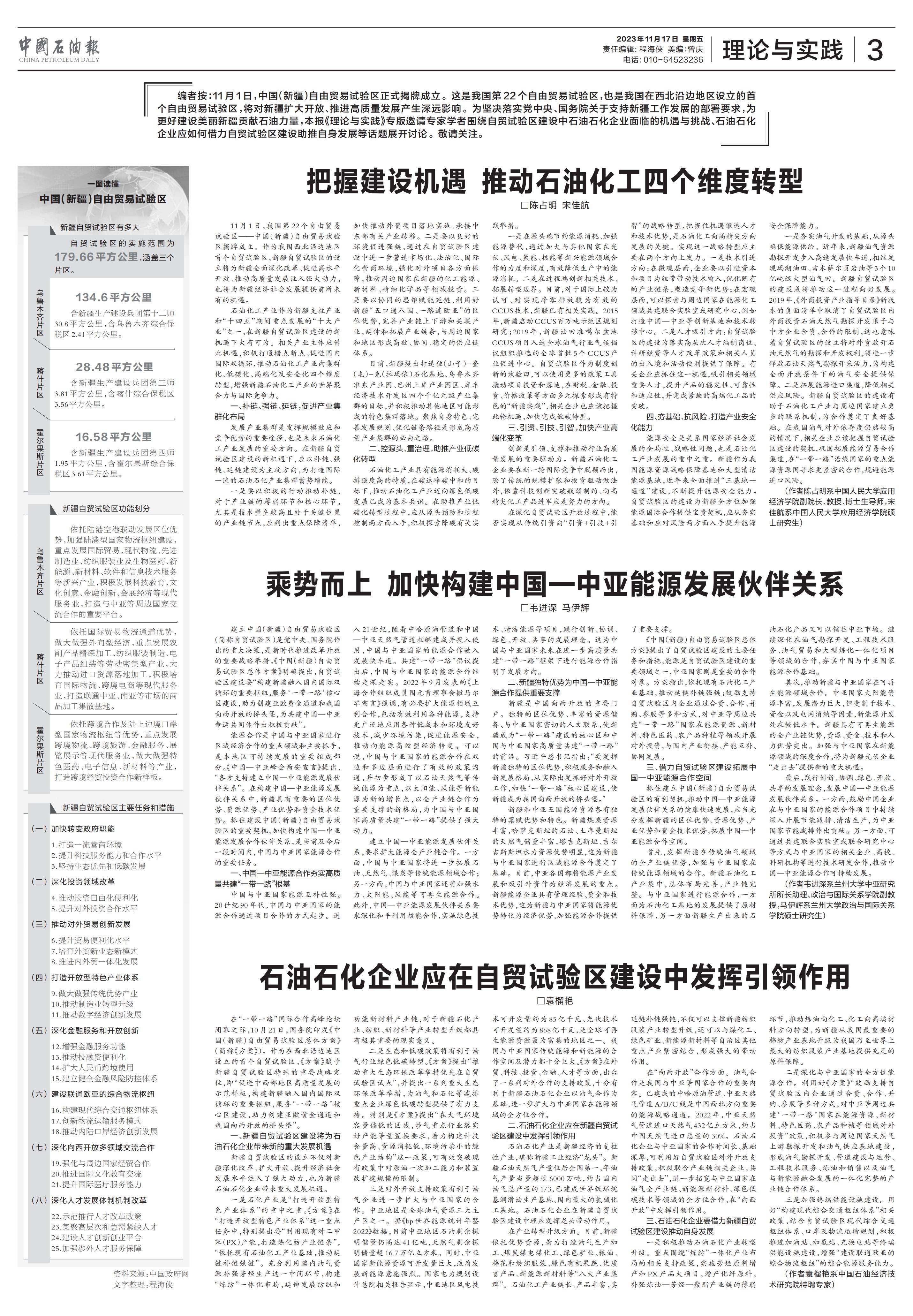 《中国(新疆)自由贸易试验区总体方案》提出了自贸试验区建设的主要任务和措施,能源是自贸试验区建设的重要领域之一,中亚国家则是重要的合作对象。方案指出,依托现有石油化工产业基础,推动延链补链强链;鼓励支持自贸试验区内企业通过合资、合作、并购、参股等多种方式,对中亚等周边共建“一带一路”国家在能源资源、新材料、特色医药、农产品种植等领域开展对外投资,与国内产业衔接、产能互补、协同发展。