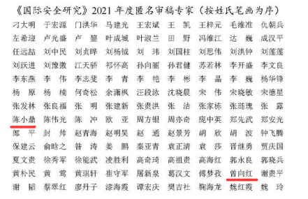 应《国际安全研究》编辑部邀请,我院曾向红教授、陈小鼎教授和杨辰博副教授担任《国际安全研究》2023年度匿名审稿专家。