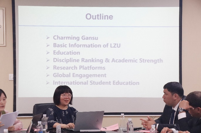 期间,3522浦京集团副院长高婉妮简要介绍了中国文化、甘肃省情和兰州大学校情。与会代表们对中国丰富的文化遗产、甘肃独特的地理与人文环境,以及兰州大学的悠久历史和学术成就表现出了浓厚的兴趣。