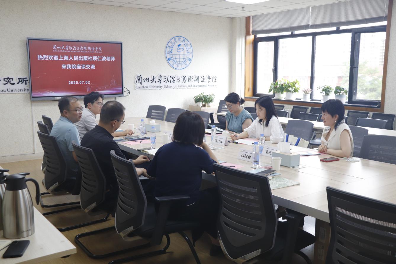 座谈会上,项仁波首先介绍了上海人民出版社的发展历程、业务方向及本次来访目标,围绕双方可能的合作领域作了说明。朱永彪从学科建设、师资力量、科研成果等方面简要介绍了学院基本情况,并强调学院高度重视学术成果转化与出版工作,期待与上海人民出版社深化合作。