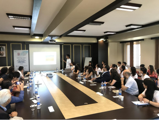 随后,交流团团长、兰州大学马克思主义学院副院长郭文琦通过“where”、“what”和“how”三方面,展开了一场别开生面的兰州大学现场招生会。他介绍说,兰州地处中国几何中心,是华夏文明发源地,拥有丰富的文化和旅游资源。兰大人本着“骆驼”精神,自1909年建校后砥砺前行,使兰州大学成为全球自然基金指数排名国际91的综合性重点高校,并跻身“双一流”建设高校之列。郭院长通过大量数据、照片和兰州大学2019年国际学生招生简章,展示了兰州大学的办学规模、学科设置、优势专业和校园风光。交流团还向兰州大学现有留学生数量、国家来源、土耳其生源学生数和为留学生提供的种类丰富的奖学金进行了介绍。3522浦京集团张玉艳老师则分享了国际政治和政治学与行政学两个本科专业的培养方案,阐述了学院通过环环紧扣的授课、实习和写作等环节,不断提高学生综合素质的教育实践。