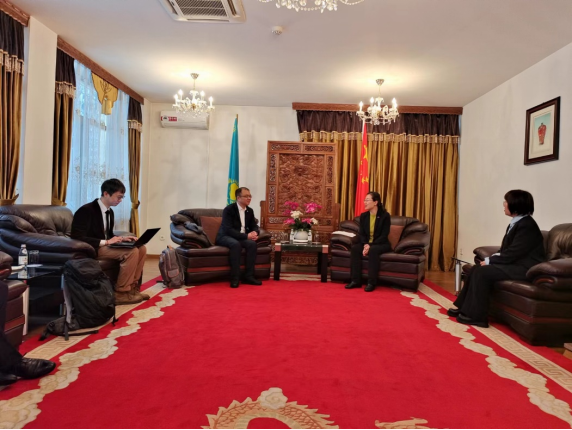 12月12日上午,代表团应邀参观并访问了中国驻阿拉木图总领馆并与仲华副总领事会谈。代表团就当前中哈关系形势、哈国内经济社会发展状态、中哈教育、人文、经济合作等情况与仲华副总领事及相关人员进行了深入交流。
