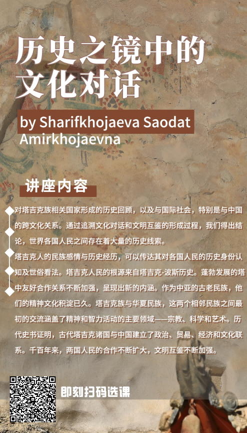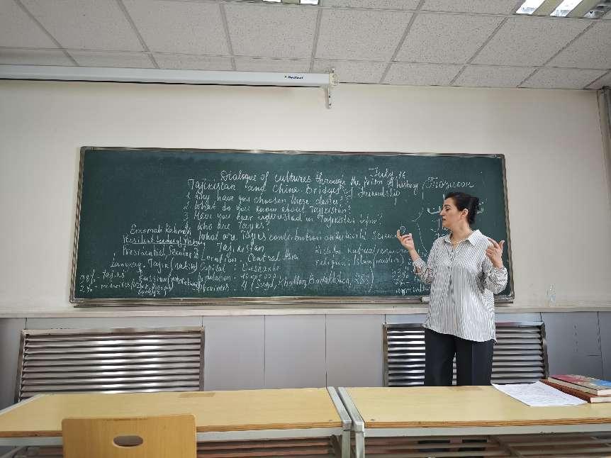 Sharifkhojaeva Saodat Amirkhojaevna主要从塔吉克斯坦的国家形成、历史沿革等方面进行授课,并强调了塔吉克斯坦的国际交往,特别是中塔关系发展。中塔两国近邻交流涵盖了经济、政治、文化和艺术等众多领域。在追求国家发展振兴的关键一程,中塔“合作之手”紧紧拉在一起。随着元首外交引领下,中塔携手共铸友好新辉煌。