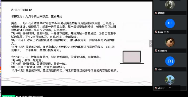 此次线上考研经验交流会,为考研同学指明了学习方向,使同学们掌握了一些考研技巧,也进一步激励他们以更为理性的心态看待就业与考研。此次交流会,是2020届毕业生在就业、考研受到疫情影响的背景下,学院在2020届毕业生考研初试成绩已出、准备复试的重要节点,为促进就业工作而开展的有针对性的就业帮扶措施之一。