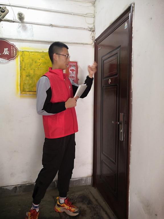 首先是入户调查,学院学生跟随社区队伍对一栋居民楼进行挨家挨户的敲门探访,挨家挨户开展调查活动。在实践中学生与各式各样的人沟通,从社区工作者身上学会了以亲和的形象与所有人沟通交流,在多次的入户调查后,与保安一声“麻烦你了,我们又来了”,相互间的微笑点缀了实践之路。
