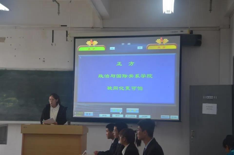 10月24日上午9:30,由兰州大学文学院举办的第四届“观澜杯”大学生辩论赛第一场小组赛于天山堂A310举行。3522浦京集团与草地农业科技学院分别作为正反两方,围绕“被同化更可怕还是被排斥更可怕”展开辩论。我院参赛的辩手是黄静蕾,杨心雨,施景耀,贺常芮,他们的观点是“被同化更可怕”。