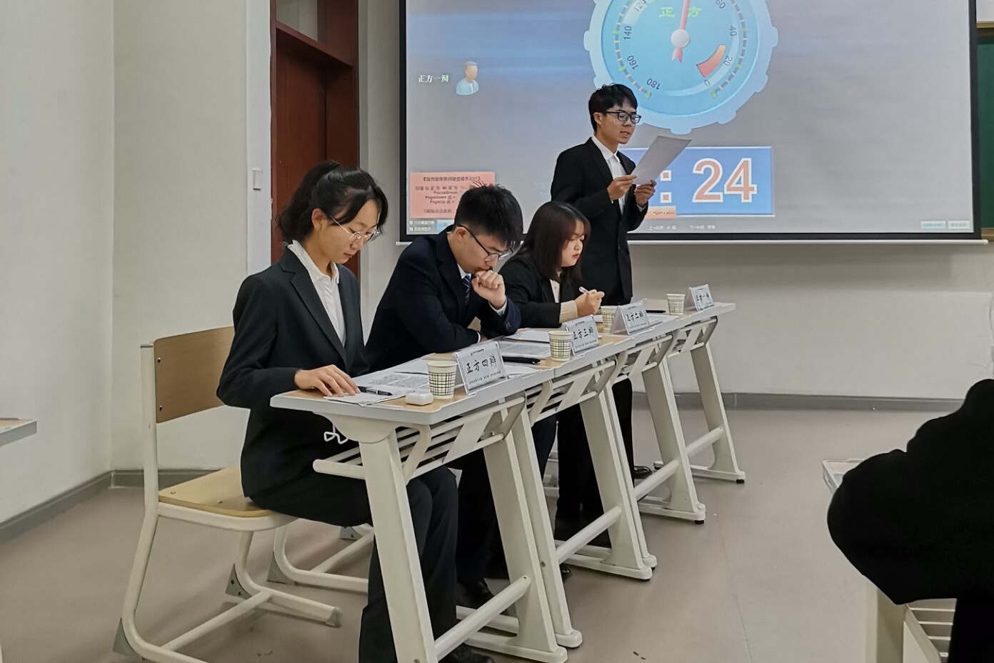 3522浦京集团与管理学院分别作为正反方,围绕“在当下,泛娱乐化现象是/不是弊病”进行辩论。我院参赛辩手为一辩廖耀升、二辩杨心雨、三辩施景耀、四辩刘文瑾,他们的观点是“在当下,泛娱乐化现象是弊病”。本场辩论赛中,我方认为泛娱乐化现象逾越适当界限,使人们对事物认知时模糊事件原本应有性质,导向一种畸形表达,应当从社会层面出发评价泛娱乐化现象为弊病。随后,我方辩手就辩题与反方展开辩论,我方辩手准备充分、配合紧密,以清晰的表达、严谨的逻辑为优势应对反方辩手所持观点及质询。反方辩手亦有备而来,言辞犀利,我方最终遗憾落败,在此届“英才杯”辩论赛中止步四强。