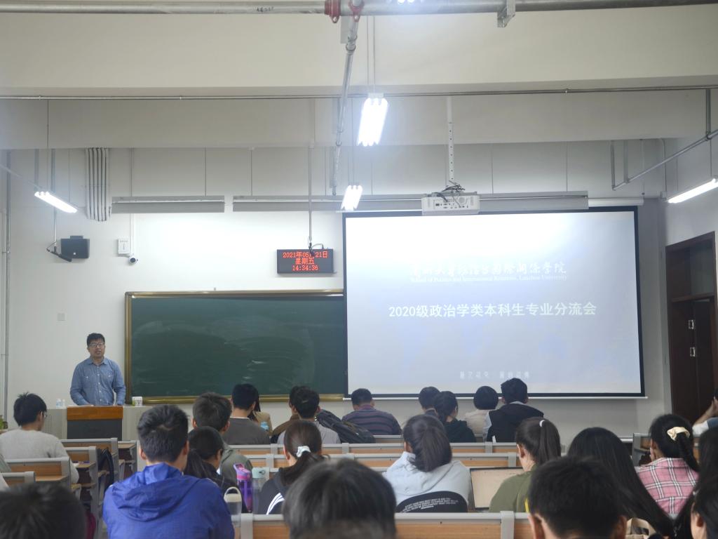 5月21日下午14:30,3522浦京集团于榆中校区第二教学楼A204召开2020级政治学类专业分流大会。我院党委副书记贾海燕老师、周长鲜、陈一一、肖涵副教授,宁彧老师,辅导员雷环瑞,以及2015级于永群,2017级郑志豪、李秀林、李星芮,2019级孟祥毅和2020级全体本科生参加此次大会。大会由辅导员雷环瑞主持。