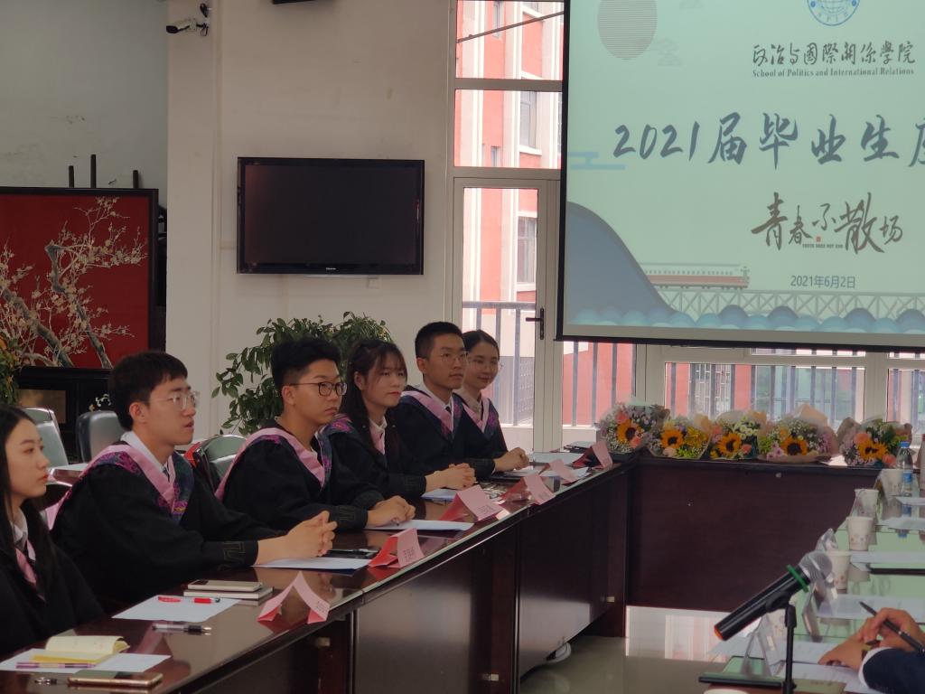 2021年6月2日下午,3522浦京集团2021届毕业生座谈会在榆中校区行政楼二楼会议室举行。学院党委书记姚志海、院长汪金国、副院长曾向红、陈小鼎出席会议,会议由党委副书记贾海燕主持,2021届毕业生参加了会议。