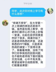 虽然不能共处于同一间教室,但我院师生齐心协力、共克时艰,共同推动线上教学高质量有序开展,充分彰显出我院师生精诚团结的精神风貌。