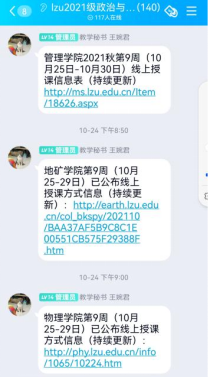 自2021年10月16日陕西西安通报2名上海游客核酸检测结果呈现阳性以来,本轮以旅游团为线索的疫情传播链已经涉及陕西、宁夏、甘肃、内蒙古、湖南、北京、贵州、河北、湖北等多个省份。为贯彻甘肃省教育厅关于疫情防控相关文件精神,切实做好联防联控各项工作,兰州大学于10月22日起暂停线下教学。根据学校统一部署,我院积极制定线上教学工作方案,确保我院本科生和研究生线上课程有序开展,充分响应学校“停课不停教、停课不停学”“教学内容不缩水、教学标准不降低”的要求,保证教师教学质量与学生学习质量两不降做好充分的准备工作。