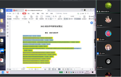 4月17日19点,我院于线上举行2022年考研经验分享会,本次分享会由我院四位考研成功上岸的学长学姐进行经验分享,为大家介绍考研的相关信息。