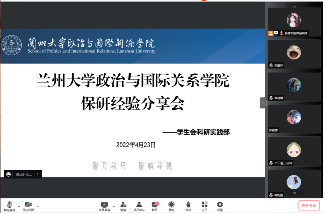 4月23日下午,我院于线上举行2022年保研经验分享会,本次分享会由我院教学秘书王婉君老师和胡龙彪、杜琴澳两位成功保研的同学进行经验分享,为大家介绍保研的相关信息。