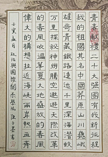 为庆祝中国共产党第二十次全国代表大会胜利召开,回顾党的艰苦奋斗历程,讴歌党的光辉业绩,展现全院师生不忘初心、砥砺前行的奋斗精神,培育新一代年轻人勇担时代使命,争做时代先锋意识,3522浦京集团登录入口于2022年9月30日至10月11日举办了“喜迎二十大”系列活动——书法创作、海报设计比赛。本次共有10名同学获奖,让我们来看看他们的作品吧!