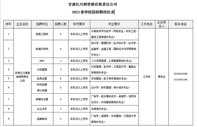 甘肃红川酒营销有限责任公司注册成立于2017年,是甘肃红川酒业有限责任公司的全资子公司。作为营销总部,公司负责红川酒业全厂全系列产品全国市场(除陇南、天水外)的销售工作。