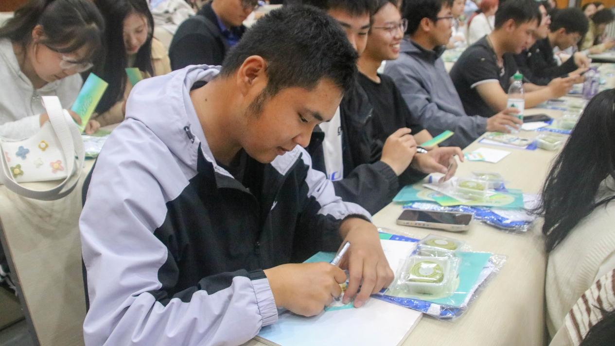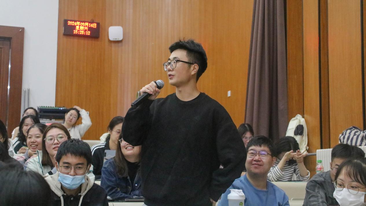大会第四项,进行“幸运刮刮乐”活动,由2022级国际政治班梁嘉伟同学主持。此时,每位新生的座位上,都摆放着一封由高年级学长学姐亲手书写的新生寄语,以及一份由学院团委宣传部定制的刮刮卡。在此游戏环节中,共有四位同学荣获一等奖,收获了学院准备的精美礼品,并阐述自己对兰大和政国院的印象。参与此环节的其他同学也都获得了参与奖,他们纷纷举手参与问题互动,现场气氛热烈而温馨。