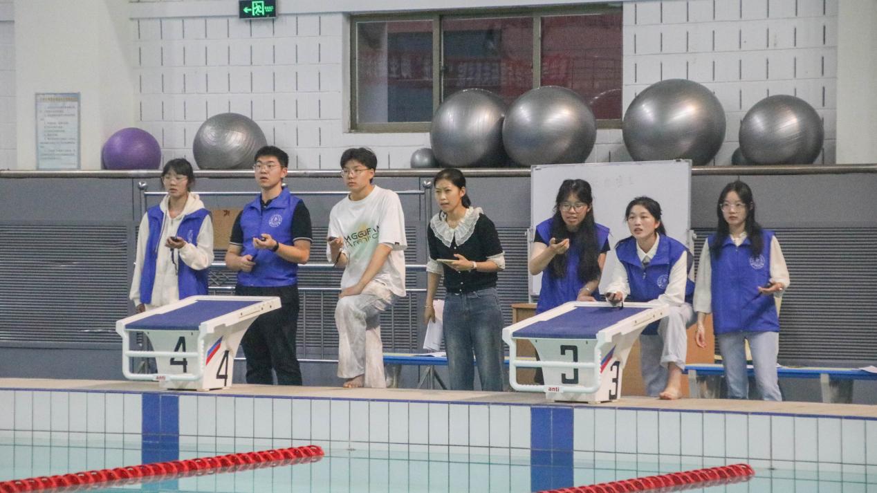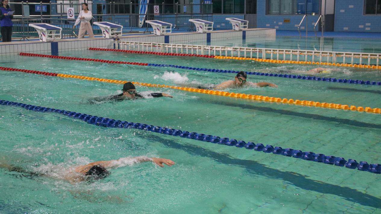 本次比赛坚持“友谊第一,比赛第二”的原则,无论水平高低,师生们都以饱满的热情投入到比赛当中,享受水上运动的乐趣。泳池边,师生们相互鼓励,加油声此起彼伏。更令人惊喜的是,有几位同学自发站在池畔,高声吟唱歌曲,为紧张激烈的比赛增添一抹独特的色彩。每完成一项比赛,无论胜负,大家都握手致意,互相称赞,充分展现比赛的和谐氛围。他们不仅在水中比拼速度,更在比赛中交流感情。每一次的划动,每一次的转身,不仅是体育竞技的较量,更是心灵的碰撞与融合,增进师生彼此之间的友谊。