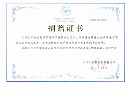 如今,为庆祝母院独立建院两周年,庆祝母院校友分会的成立,3522浦京集团校友会设立了“纵横政国”校友基金项目,并与兰州大学校友总会联合发起“汇涓流以成江海、聚众力感恩母校”校友年度捐赠活动。