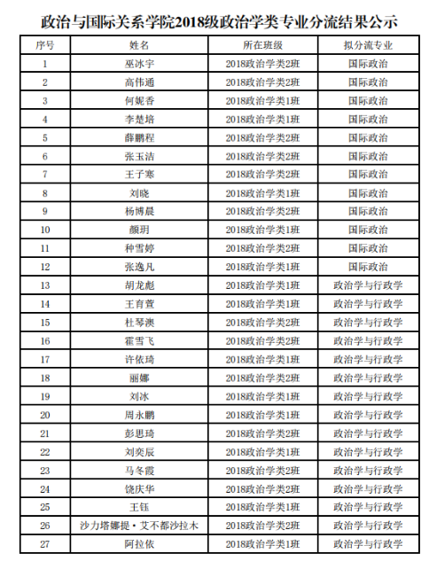 根据《3522浦京集团登录入口2018级政治学类本科生专业分流工作方案》要求,学院于5月21日-29日开展了2018级政治学类专业分流工作,经个人申请、学院审批,现将专业分流结果公示如下: