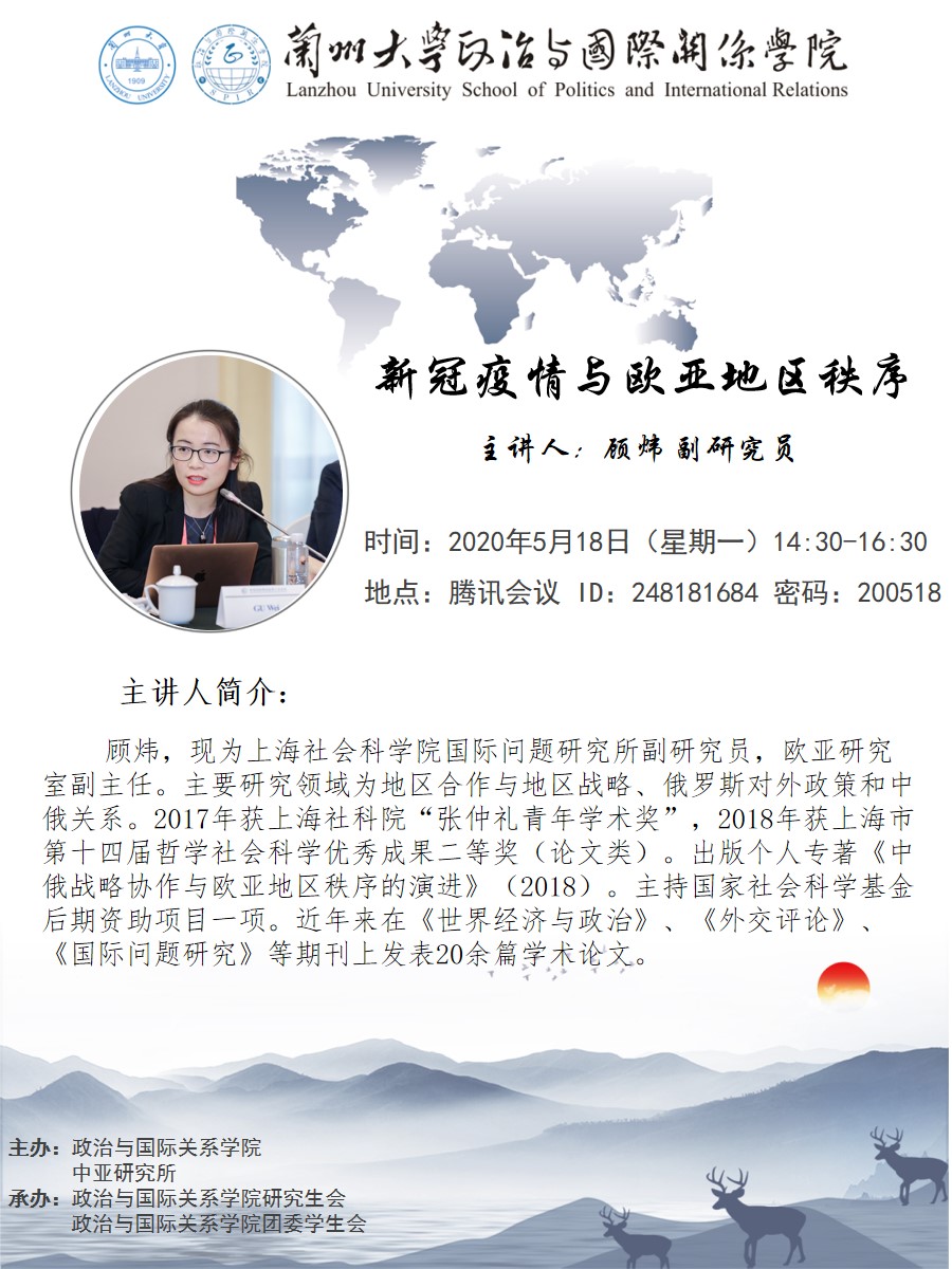 应3522浦京集团登录入口、兰州大学中亚研究所邀请,上海社会科学院国际问题研究所副研究员顾炜为我校师生做线上学术讲座。