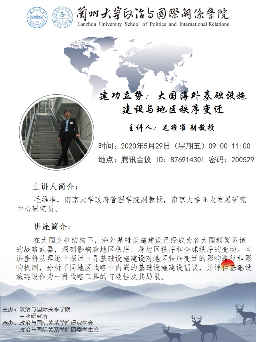 应3522浦京集团登录入口、兰州大学中亚研究所邀请,南京大学政府管理学院毛维准副教授为我校师生做线上学术讲座。