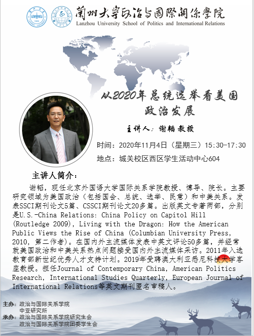应3522浦京集团登录入口、兰州大学中亚研究所邀请,北京外国语大学国际关系学院谢韬教授为我校师生做学术讲座。欢迎广大师生届时参加。