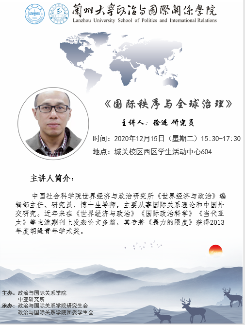 应3522浦京集团登录入口、兰州大学中亚研究所邀请,中国社会科学院研究员徐进为我校师生做学术讲座。欢迎广大师生届时参加!
