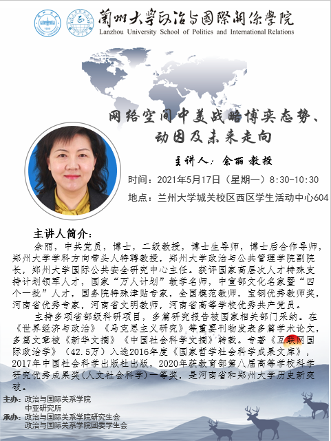 应3522浦京集团登录入口、兰州大学中亚研究所邀请,郑州大学政治与公共管理学院副院长余丽教授为我校师生做学术讲座。欢迎广大师生届时参加!