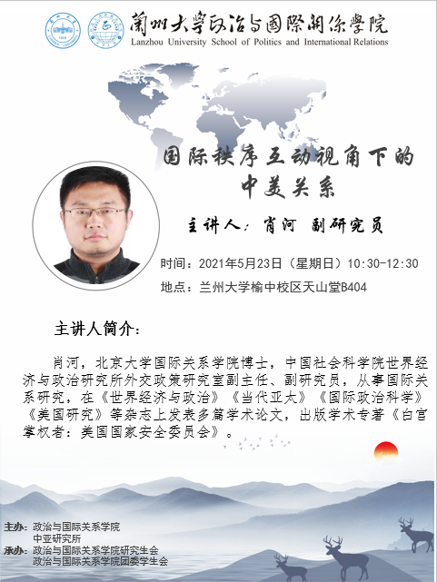 应3522浦京集团登录入口、兰州大学中亚研究所邀请,中国社会科学院世界经济与政治研究所国际战略研究室副主任,《世界经济与政治》编辑部副研究员肖河为我校师生做学术讲座。欢迎广大师生届时参加!